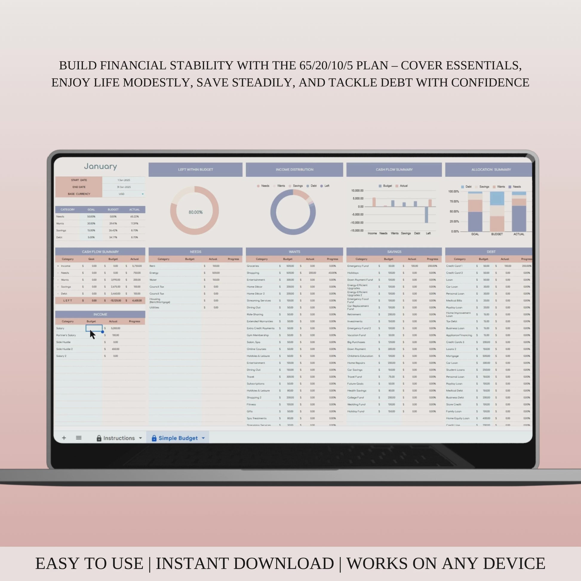 - Simple & Flexible: The clear categories make it easy to track and adjust your spending as needed.