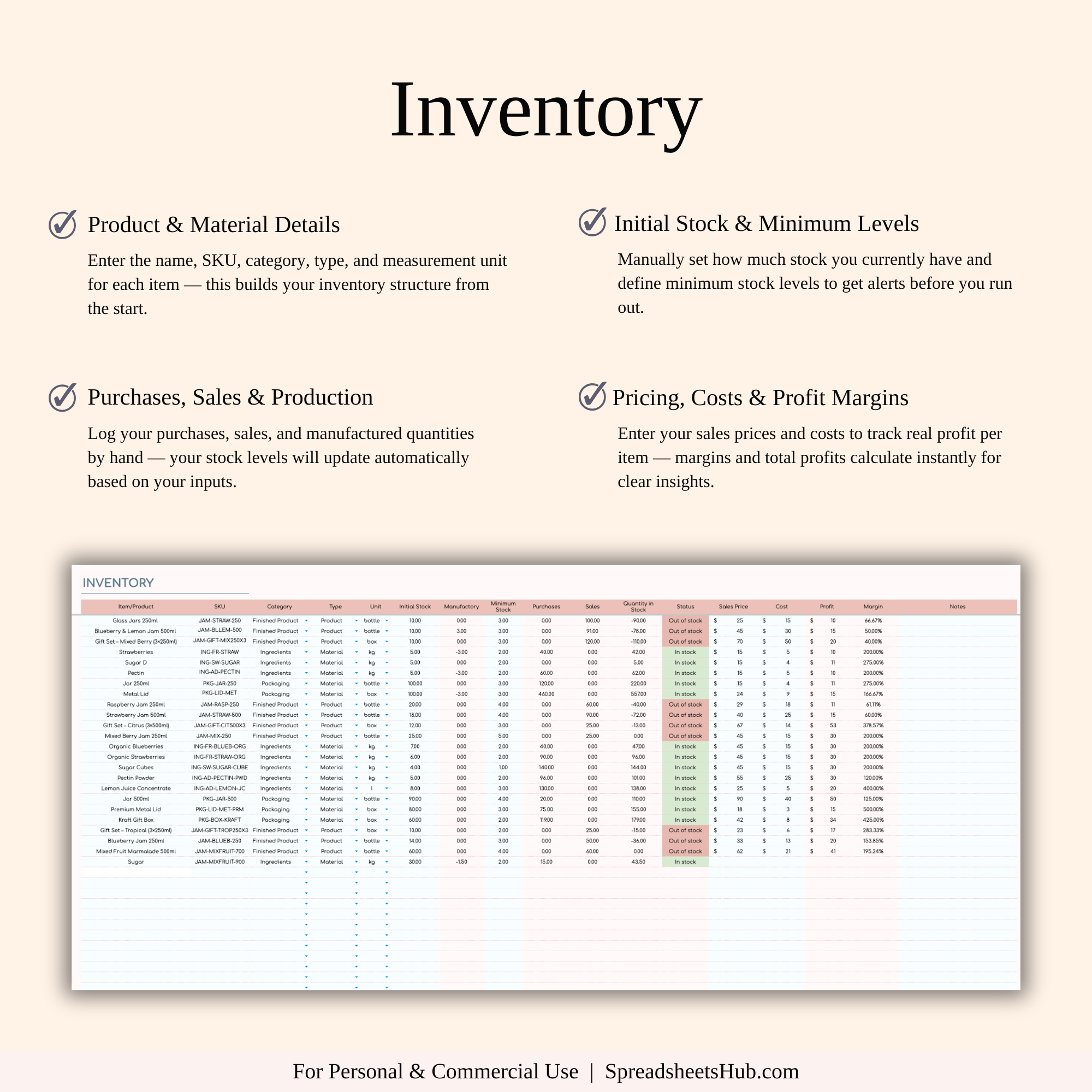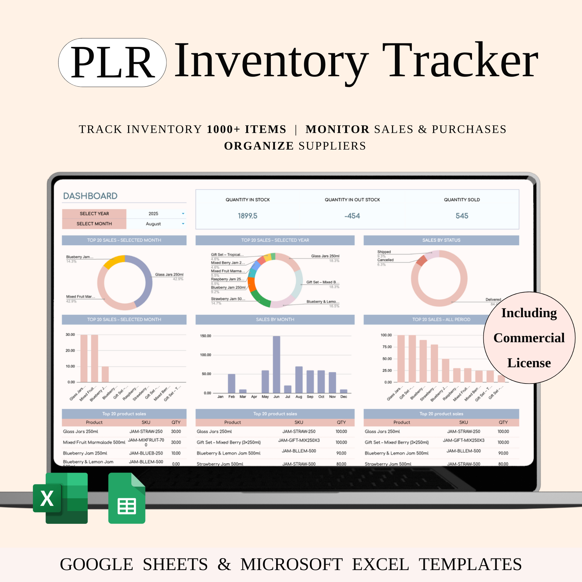 Inventory Tracker Spreadsheet Template for Google Sheets & Excel (With Resale Rights)