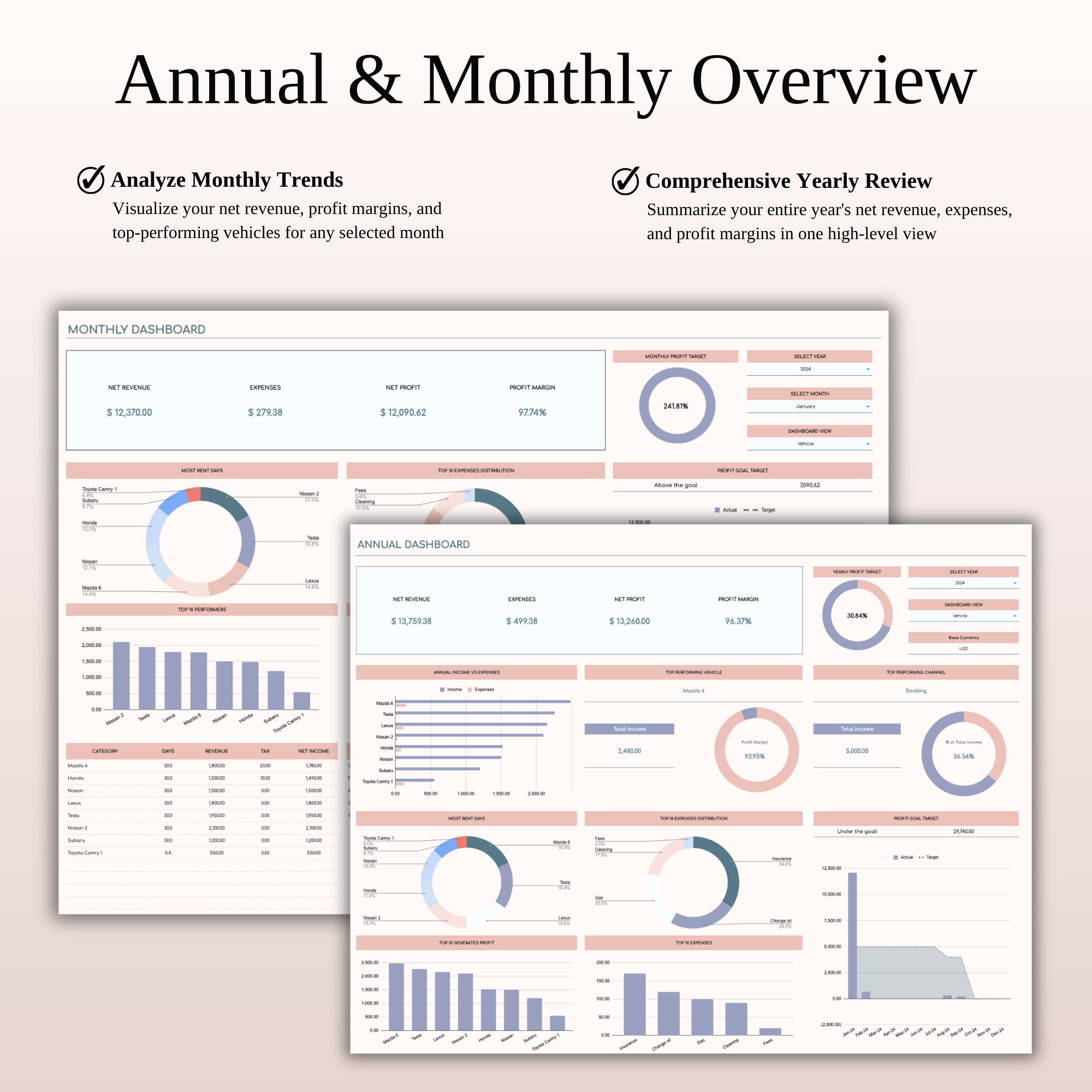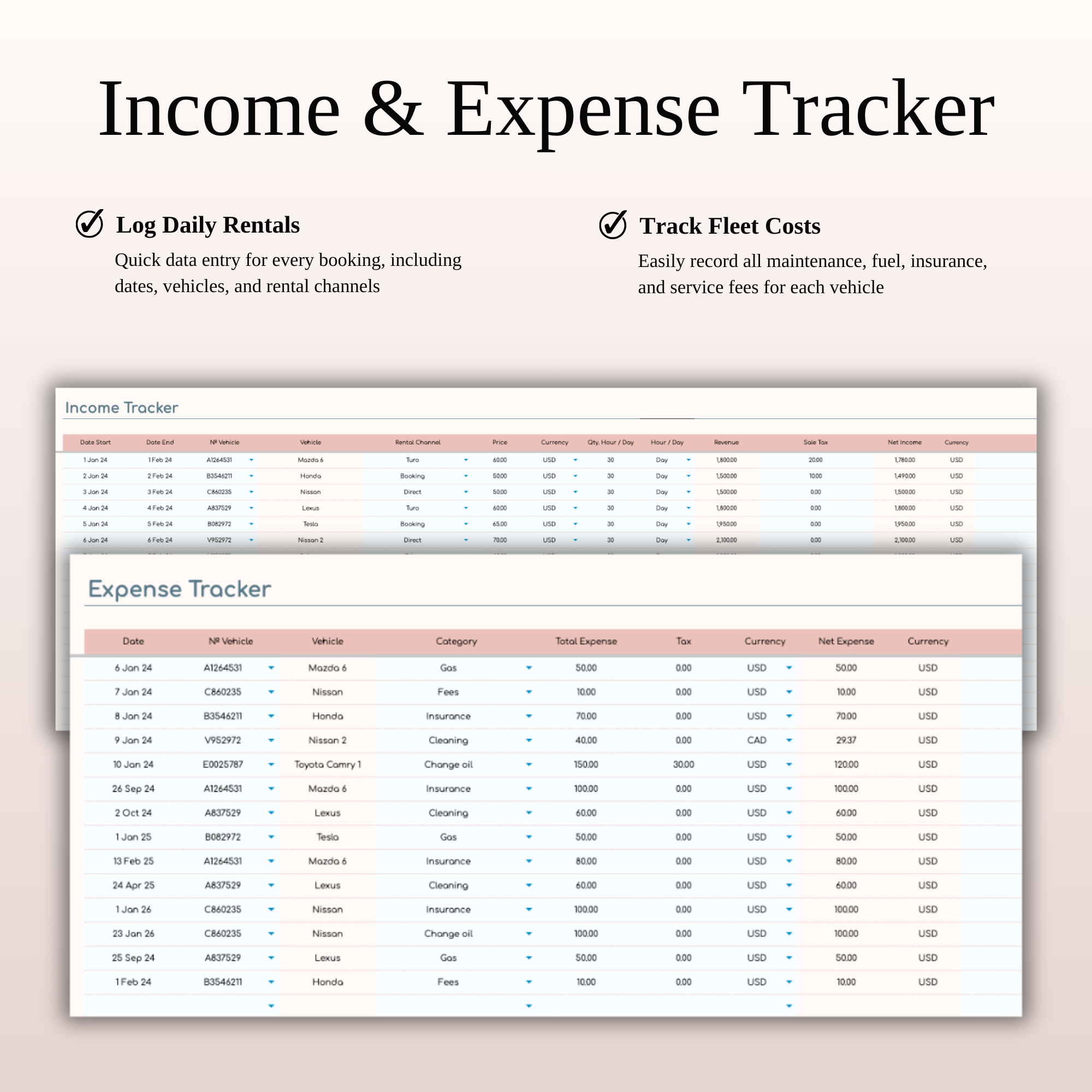 Car Rental Management & Booking Tracker, Excel & Google Sheets Template