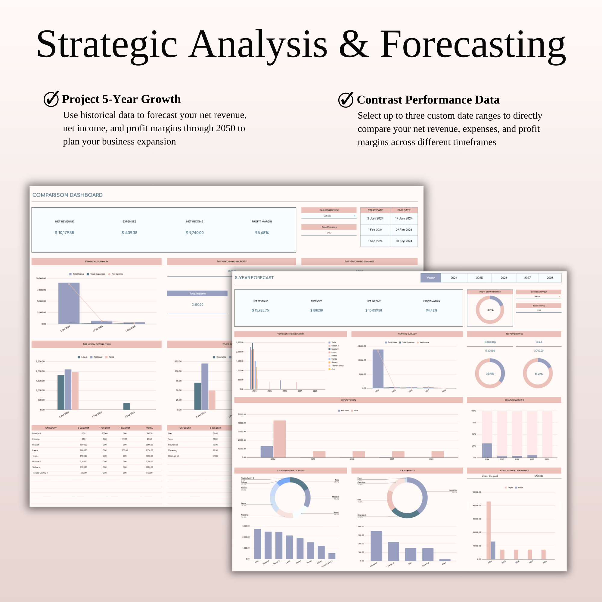 Access professional-grade Annual & Monthly Overviews, 5-Year Growth Forecasts, and Side-by-Side Comparison Dashboards. -