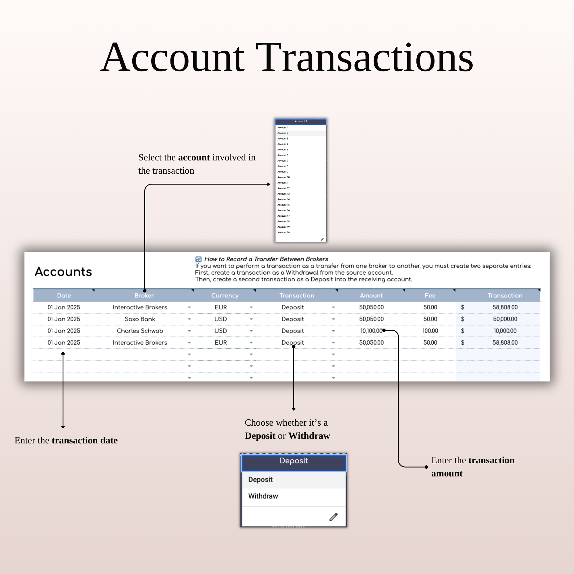 Trade in USD, EUR, or GBP—the tracker handles the math, converting everything to your base currency automatically. -
