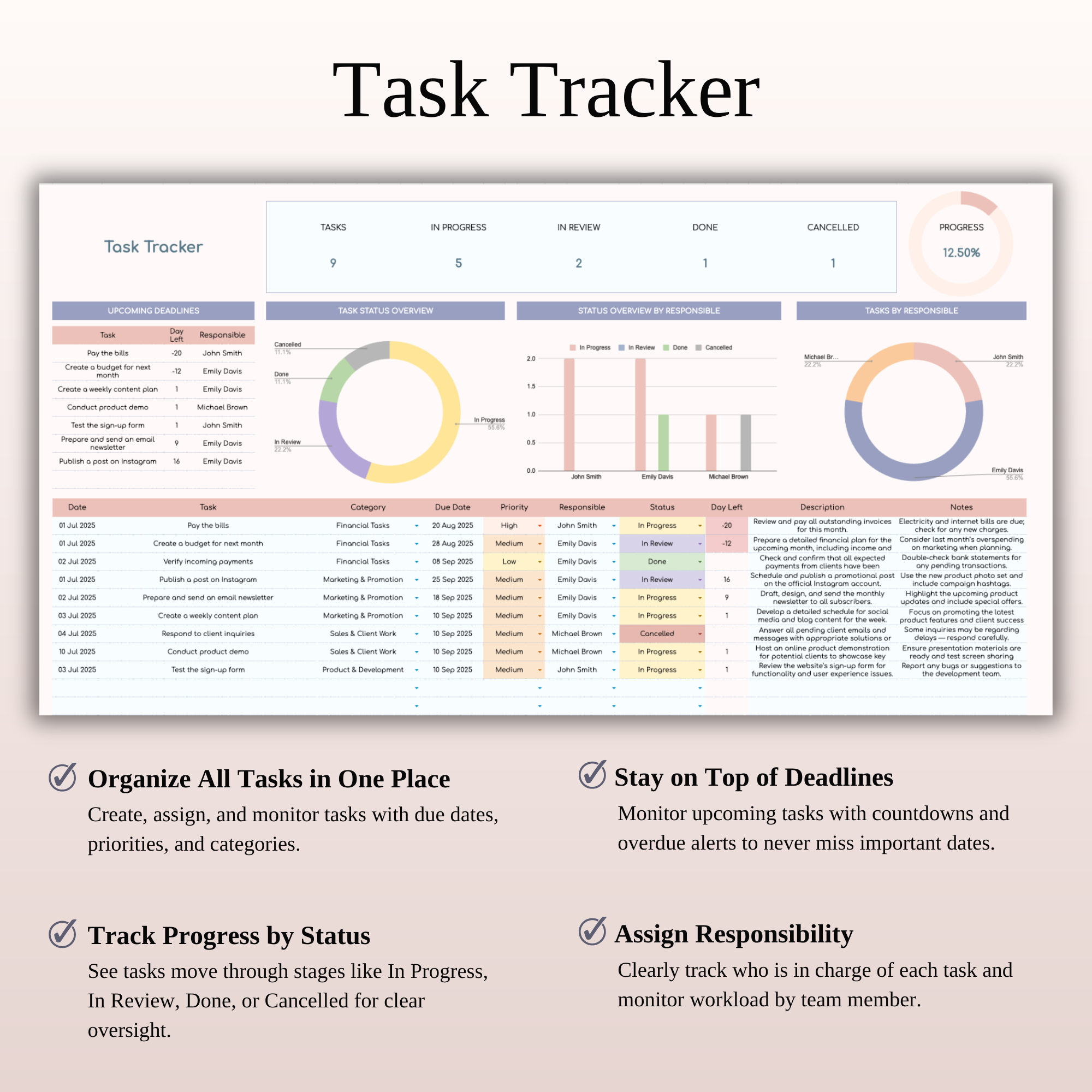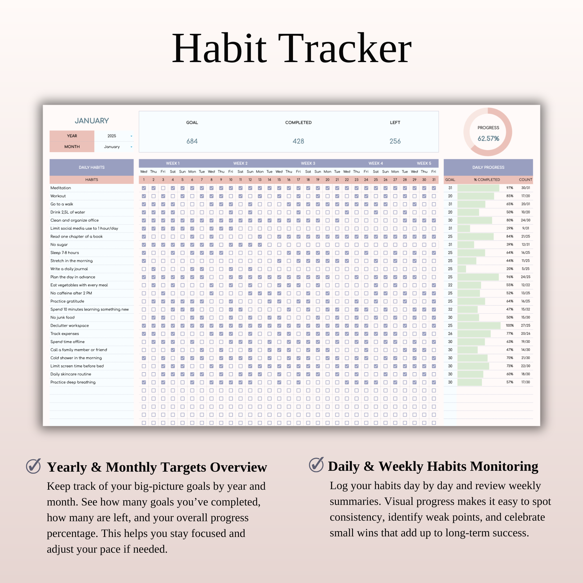 Daily Habit & Task Tracker: Track daily habits, routines, and tasks with completion percentages and visual progress, helping you build consistency.
