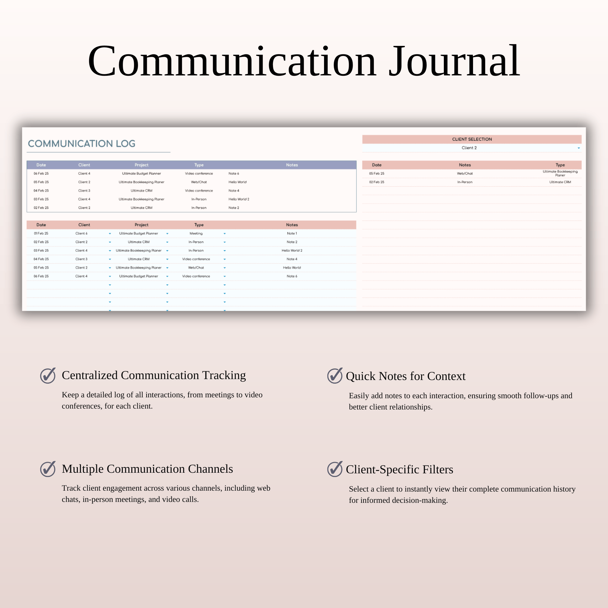 Communication History – Track all communications with customers, including emails, calls, or meetings, with space for additional notes for future reference.