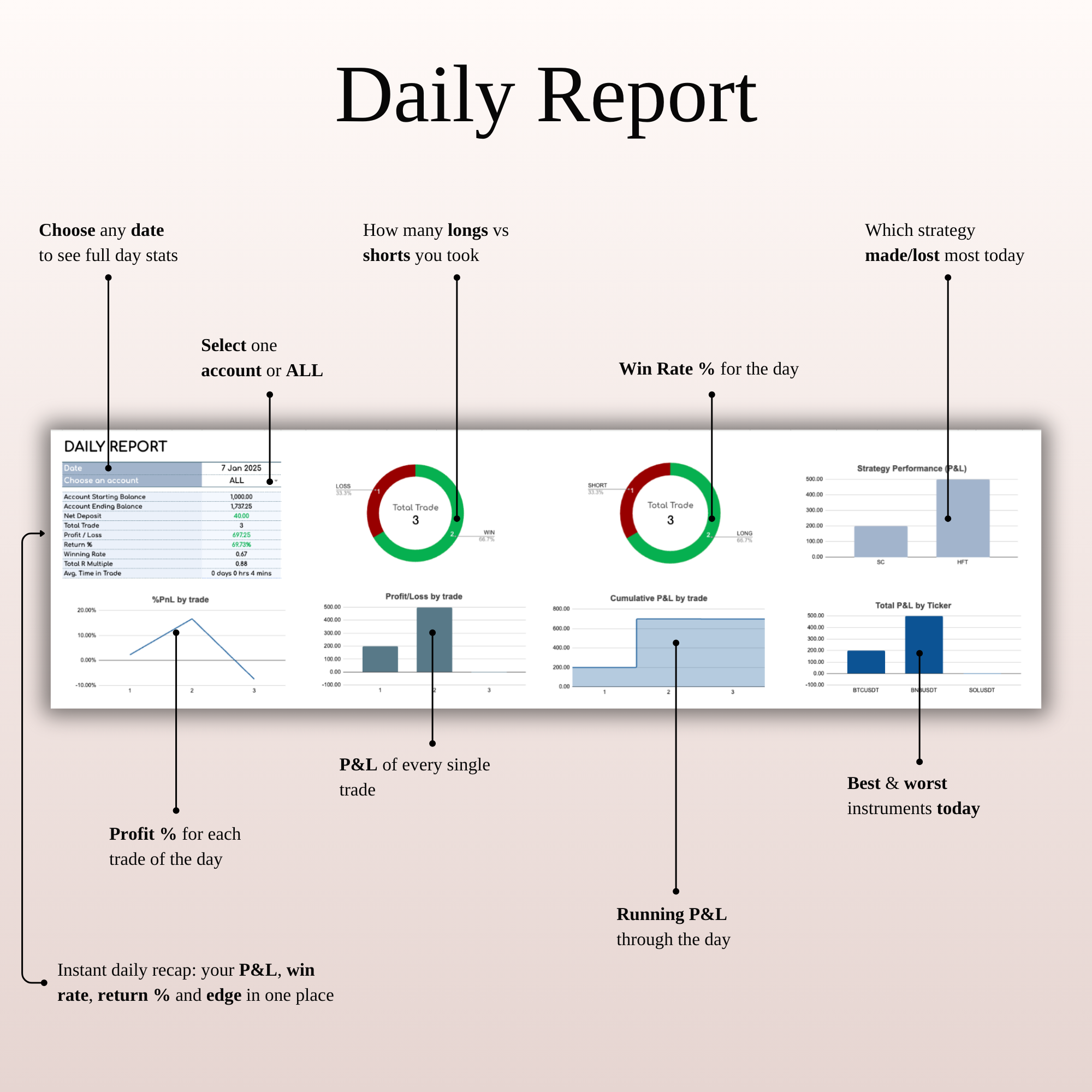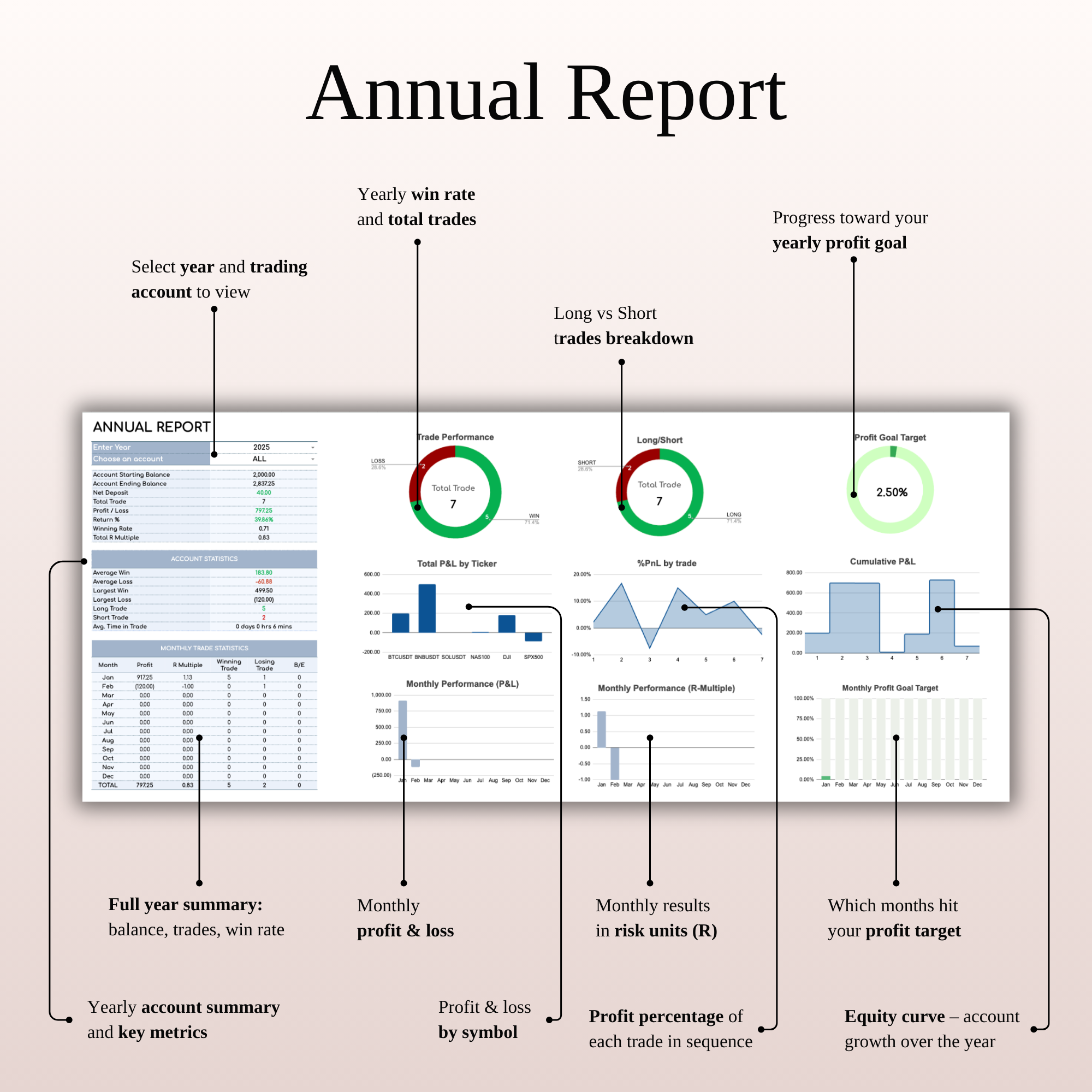 No coding. No apps. Just open the file, start logging trades, and watch 50+ pro-level dashboards update in real time.