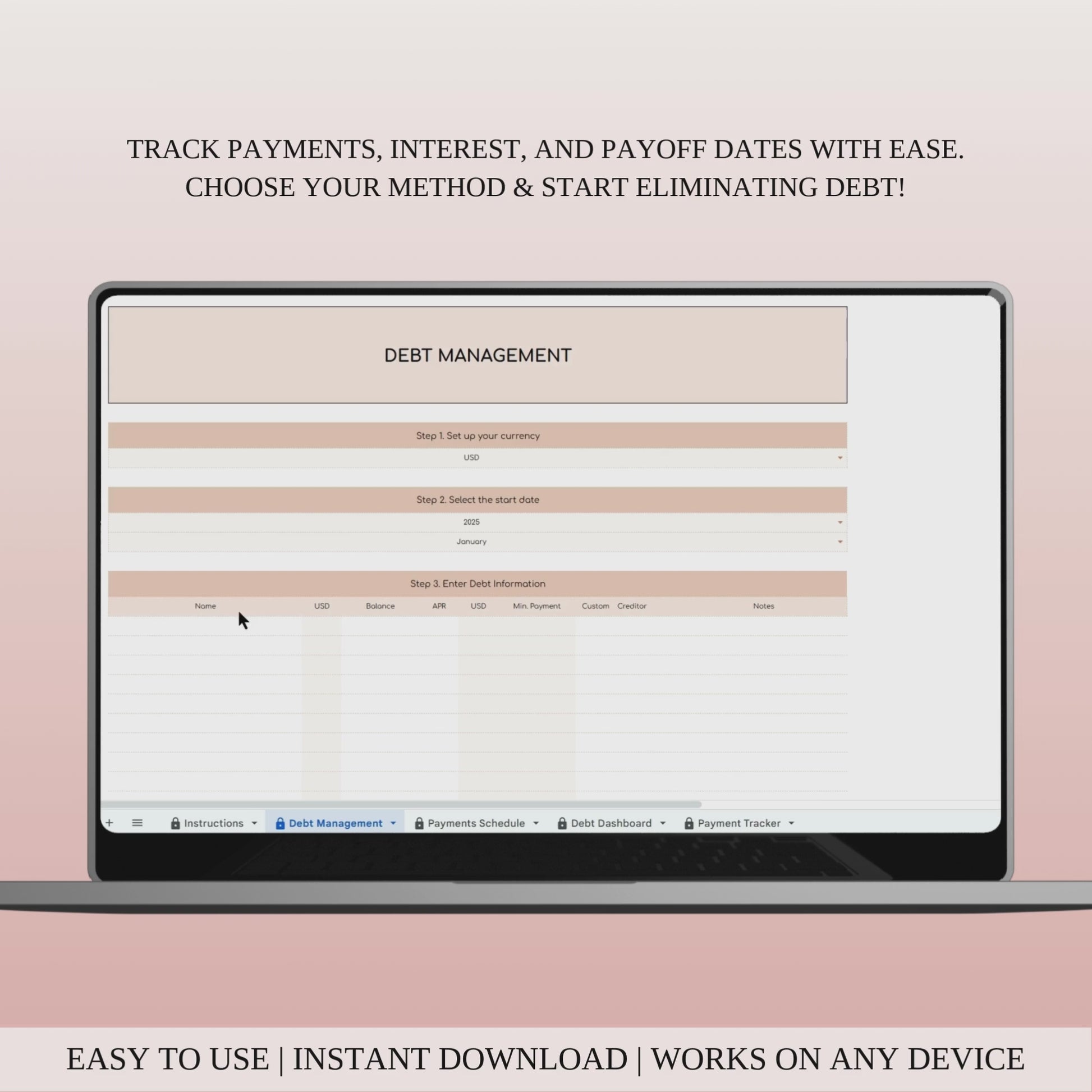 Debt Payoff Planner & Tracker | Spreadsheet Excel & Google Sheets (Elegant Theme)