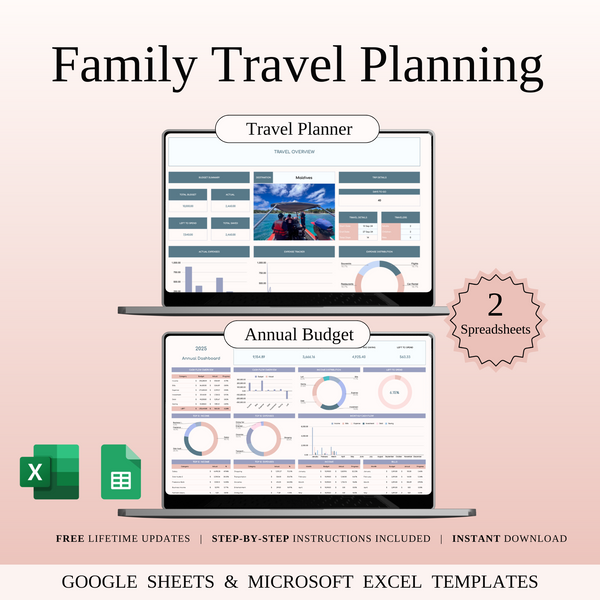 Make family travel stress-free and financially smart with the Family Travel Planning bundle. Whether you're planning a weekend getaway or a long-awaited family vacation, this toolkit helps you stay organized, on schedule, and within budget - from the moment you start planning to the moment you return home.