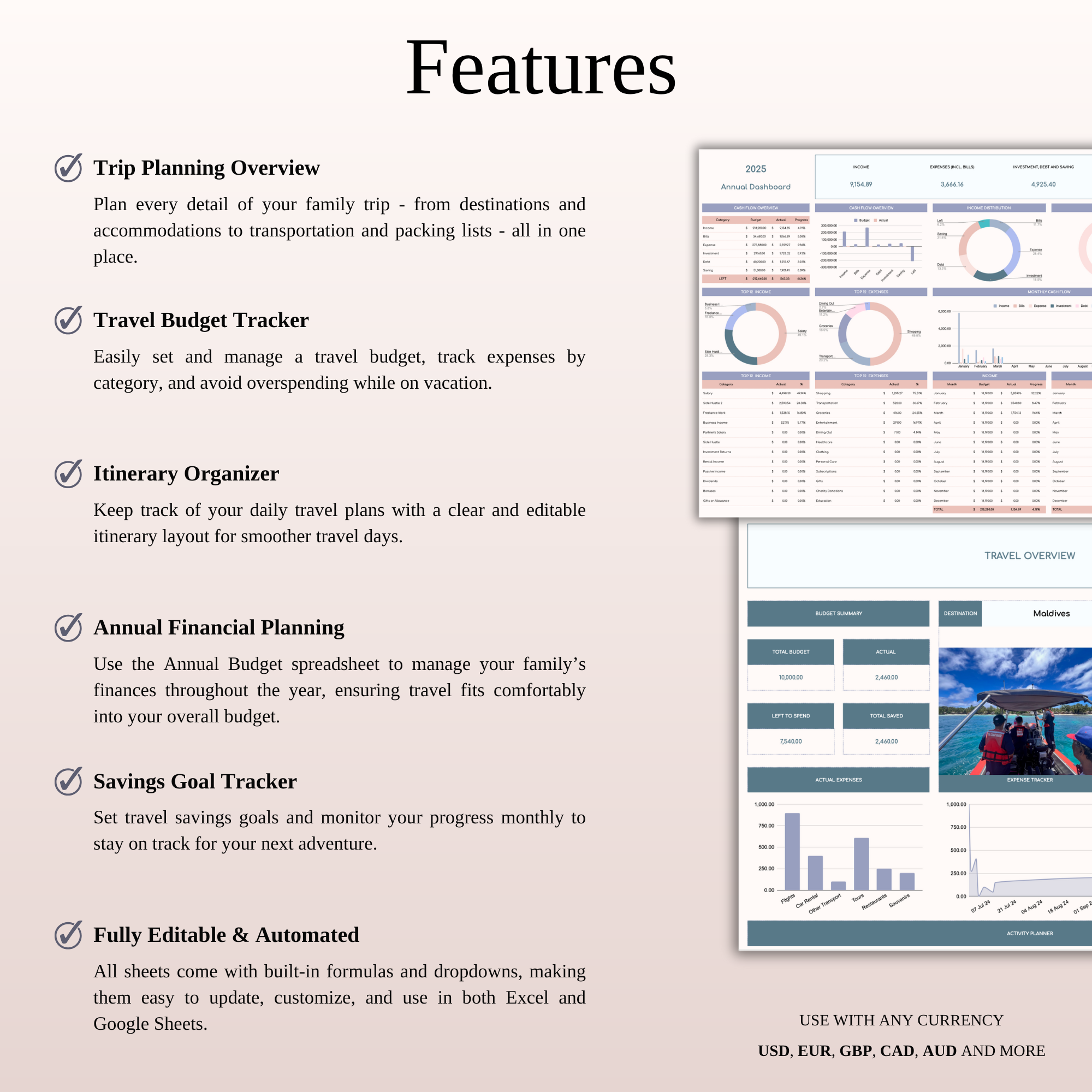 Perfect for families who love to travel but want to stay financially responsible. Ideal for parents managing both family budgets and vacation logistics in one place.