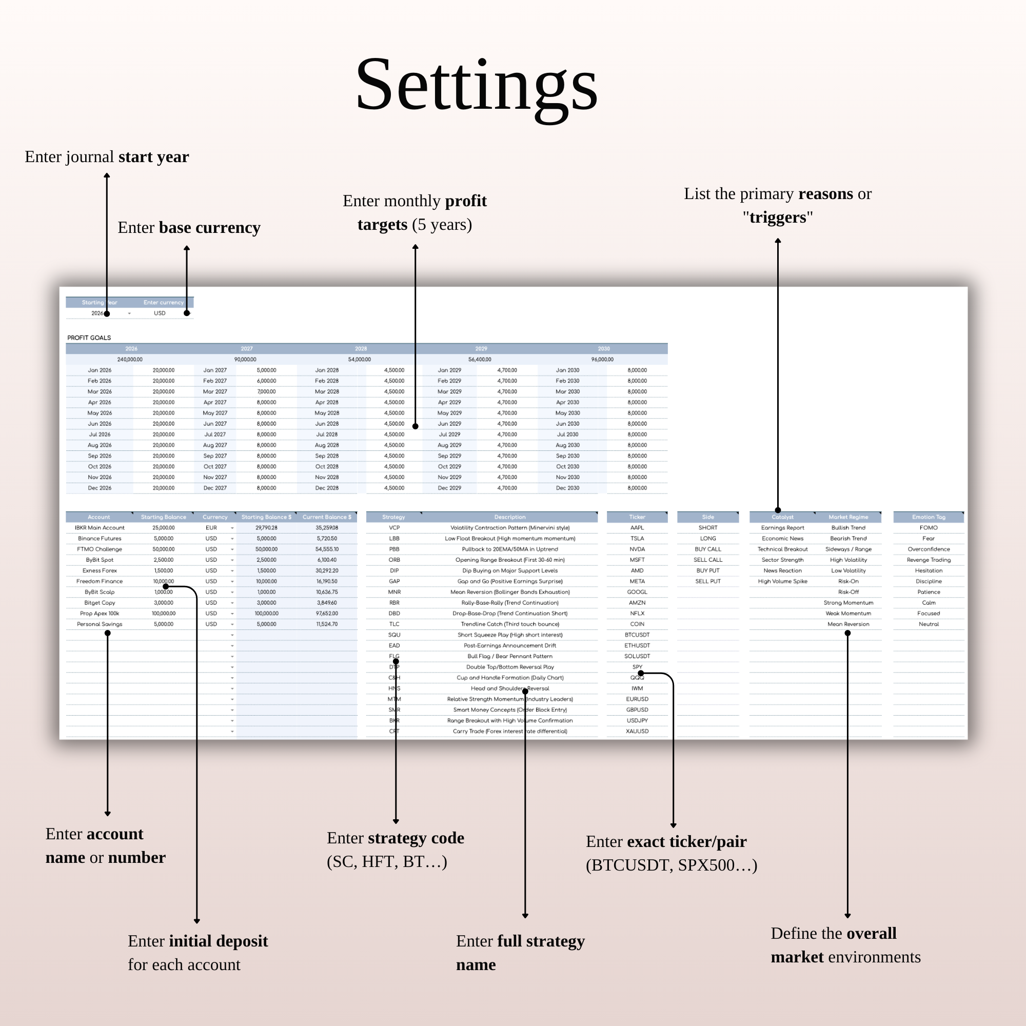 Document your Strategy Triggers, Market Regime, and Entry Reasons to ensure you are only taking A+ setups. -