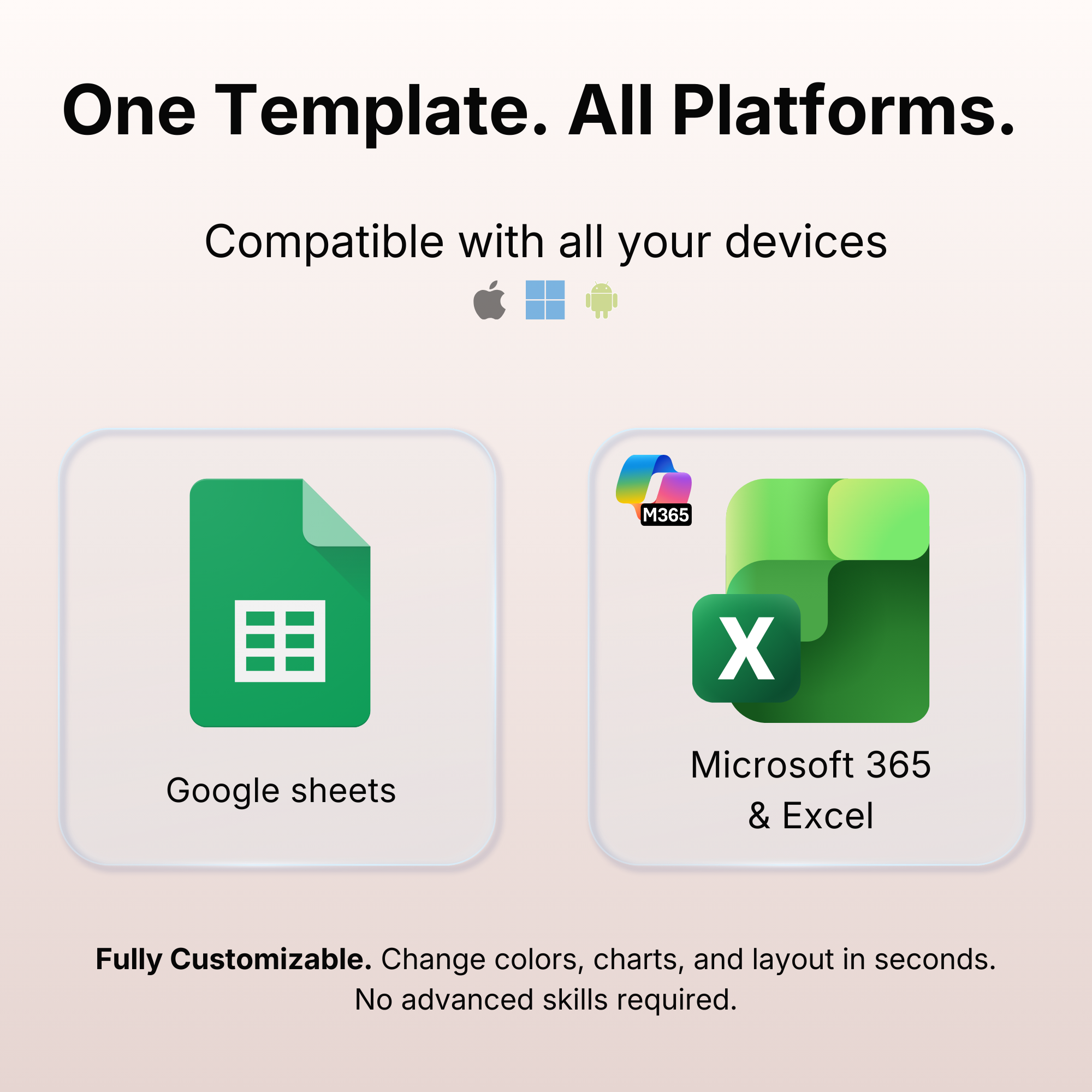 - Compatibility: This template is exclusively designed for Microsoft 365 and Google Sheets. It is not compatible with Numbers (Apple), LibreOffice, or OpenOffice.