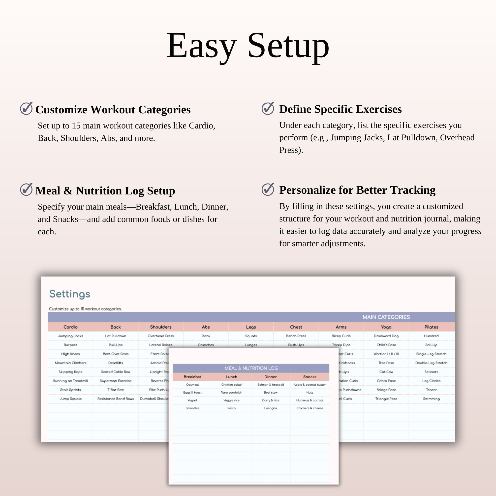 Stay organized: All workout and nutrition data in one comprehensive spreadsheet.