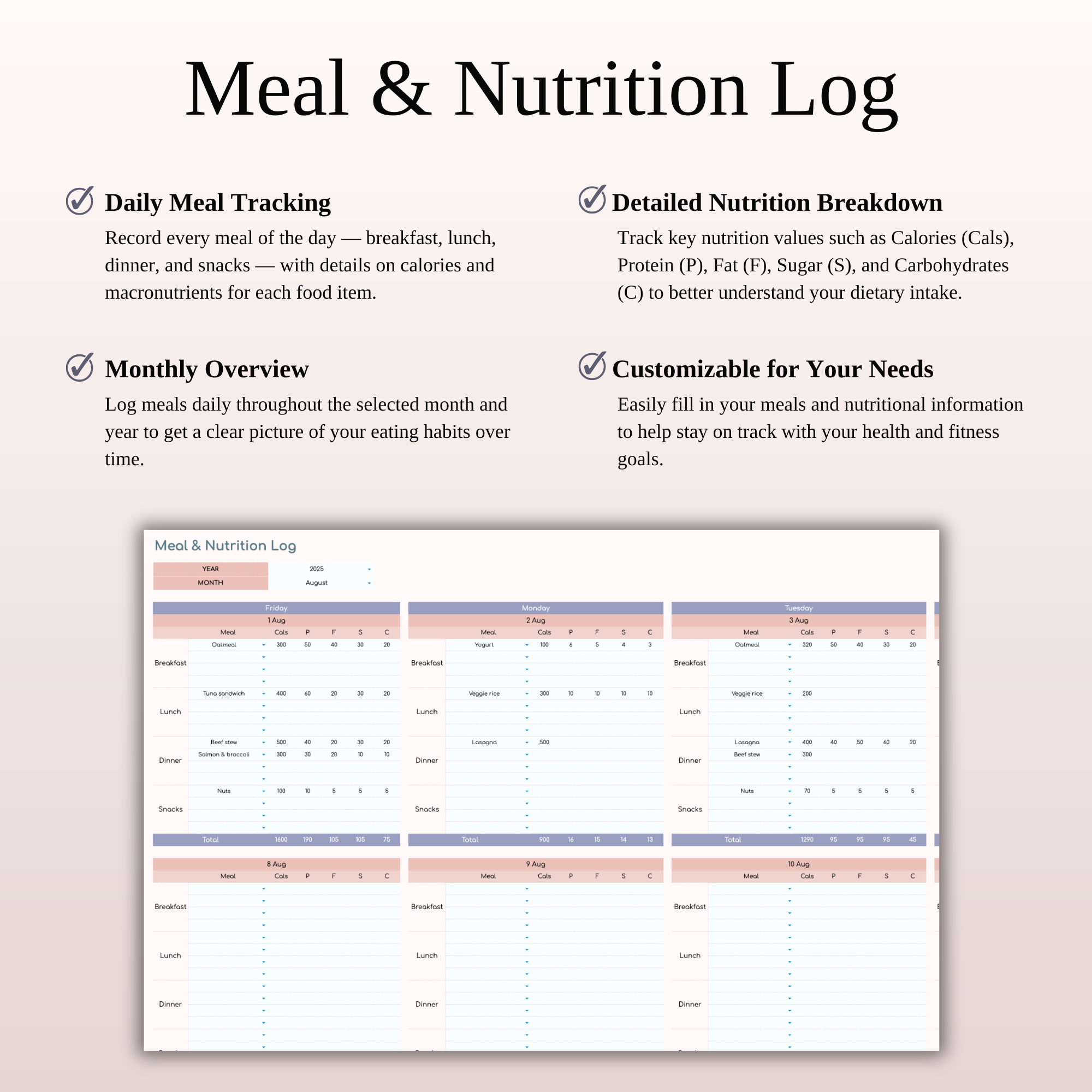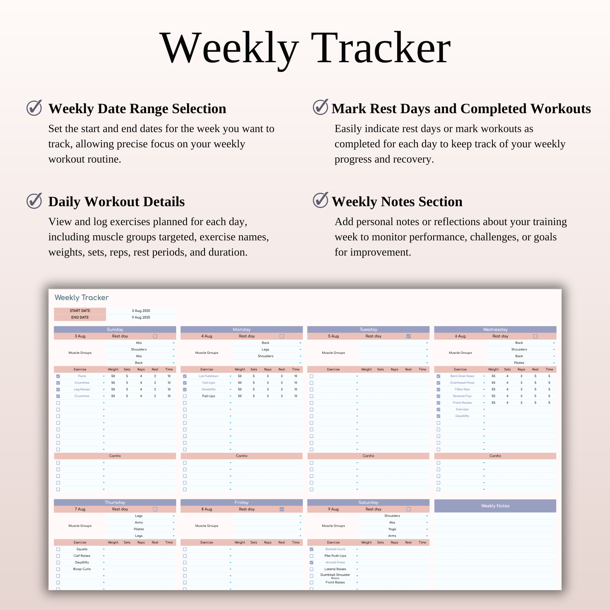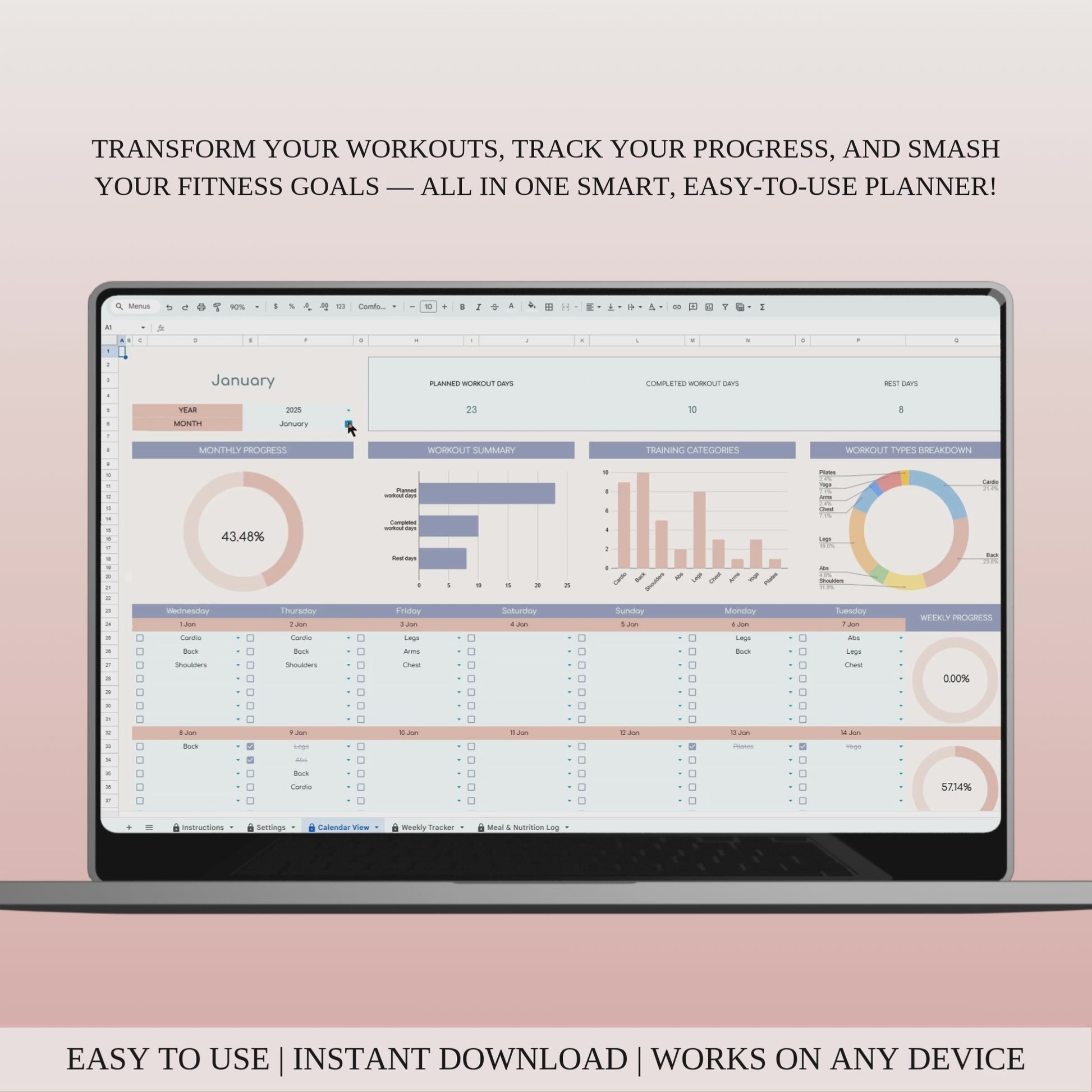 Think of this Fitness Planner as your personal assistant for workouts and nutrition. Easy to use, compatible with Google Sheets and Excel, it keeps you focused and on track — whether you’re just starting out or already experienced
