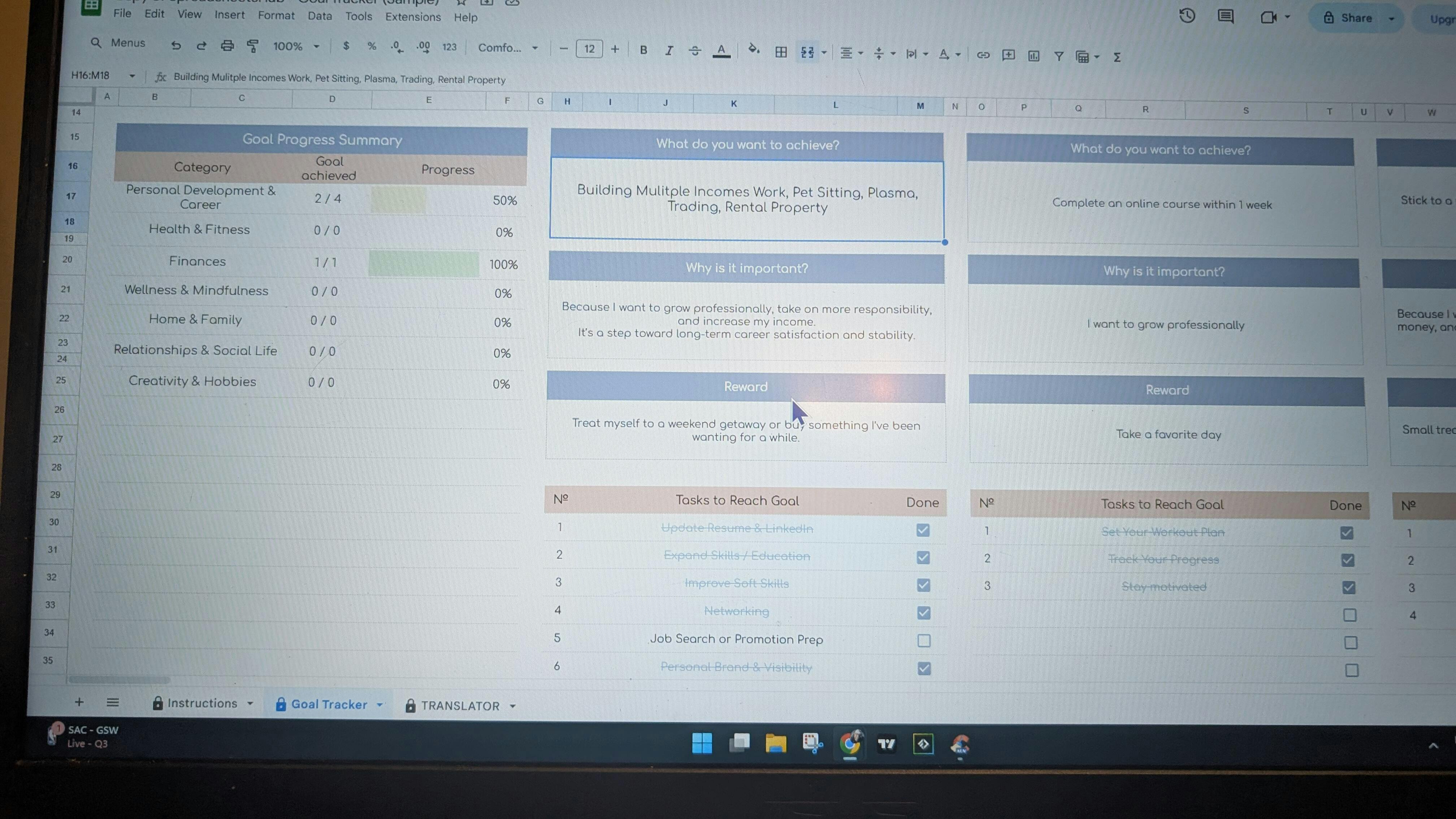 Goal Planner Template Spreadsheet for Google Sheets & Excel