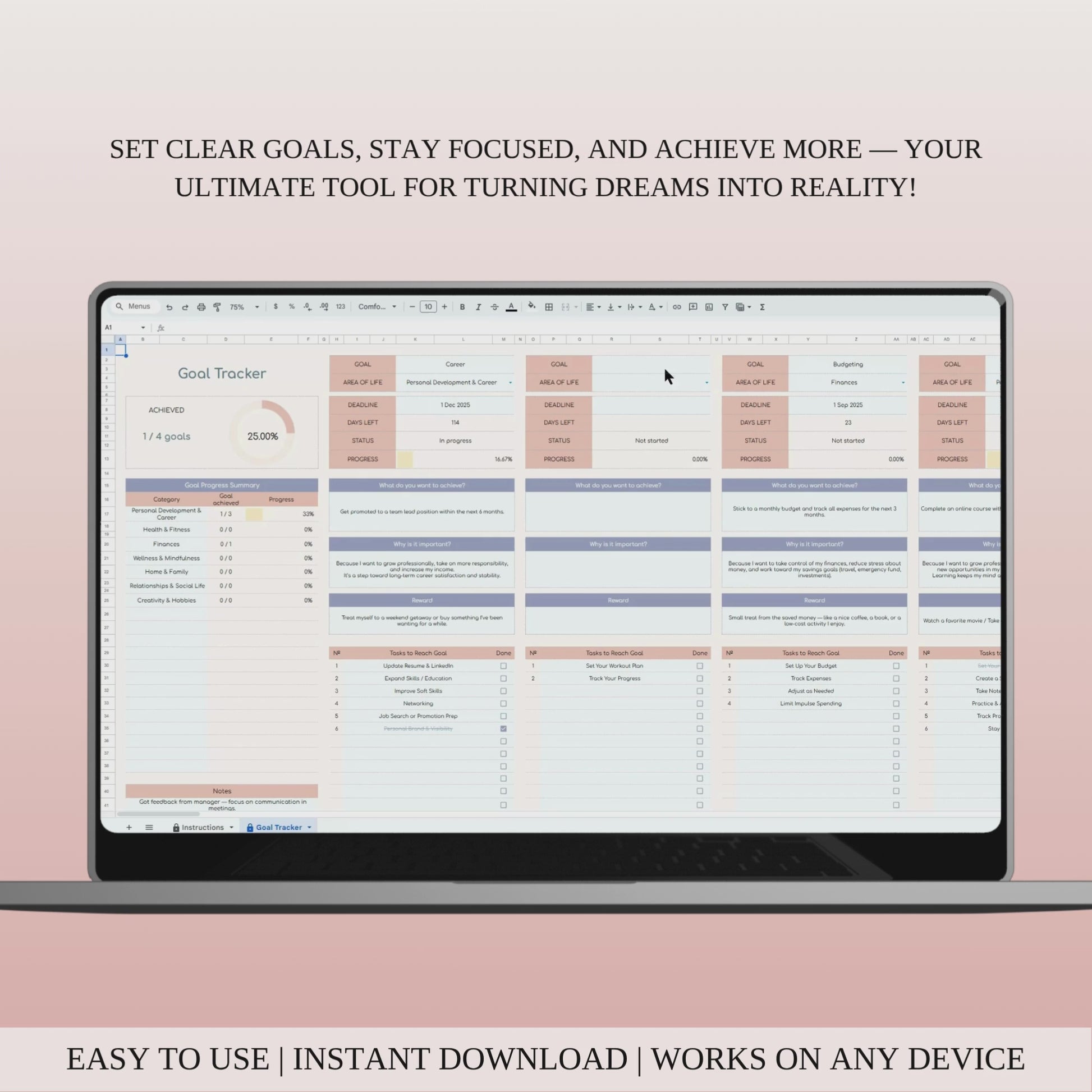 Goal Planner Template Spreadsheet for Google Sheets & Excel