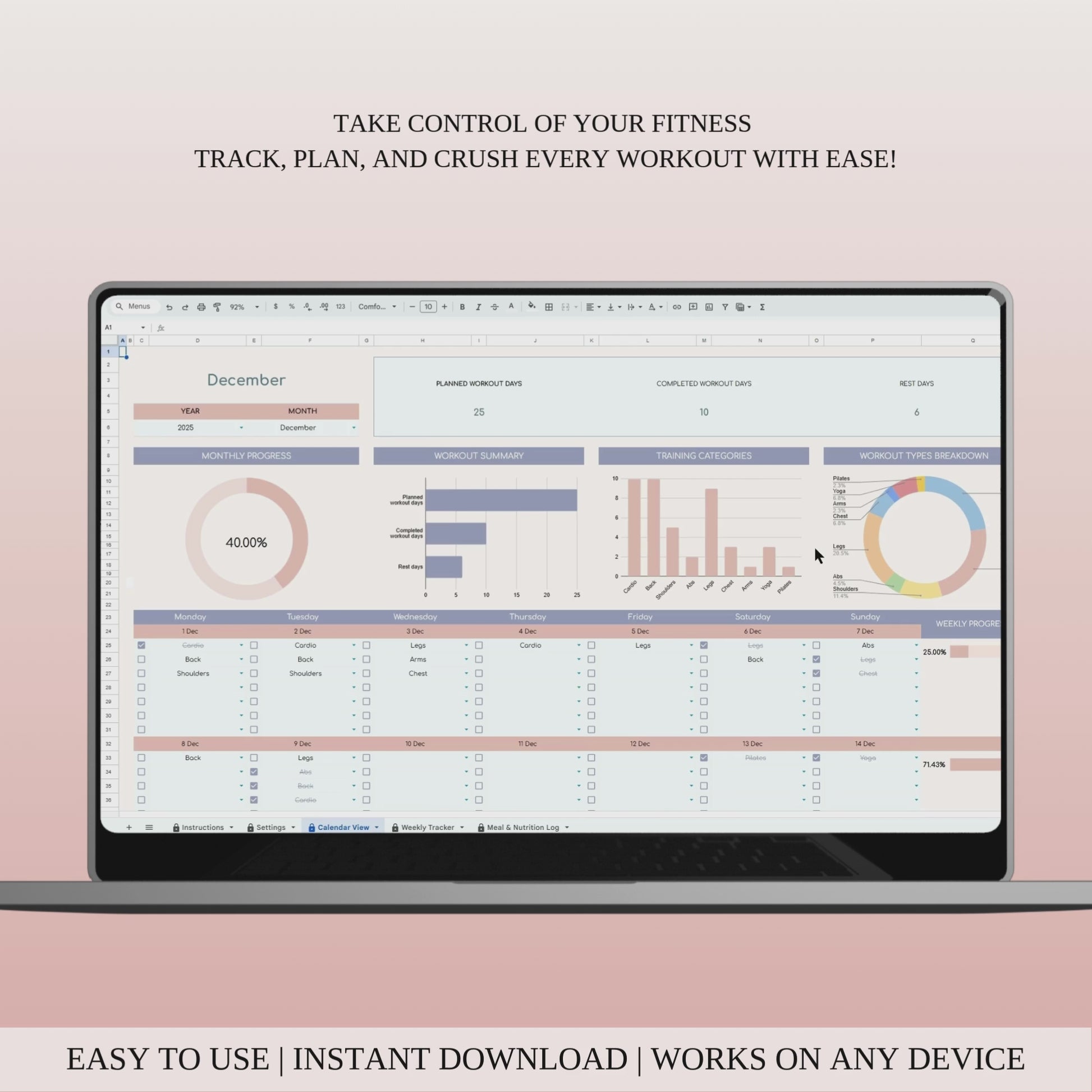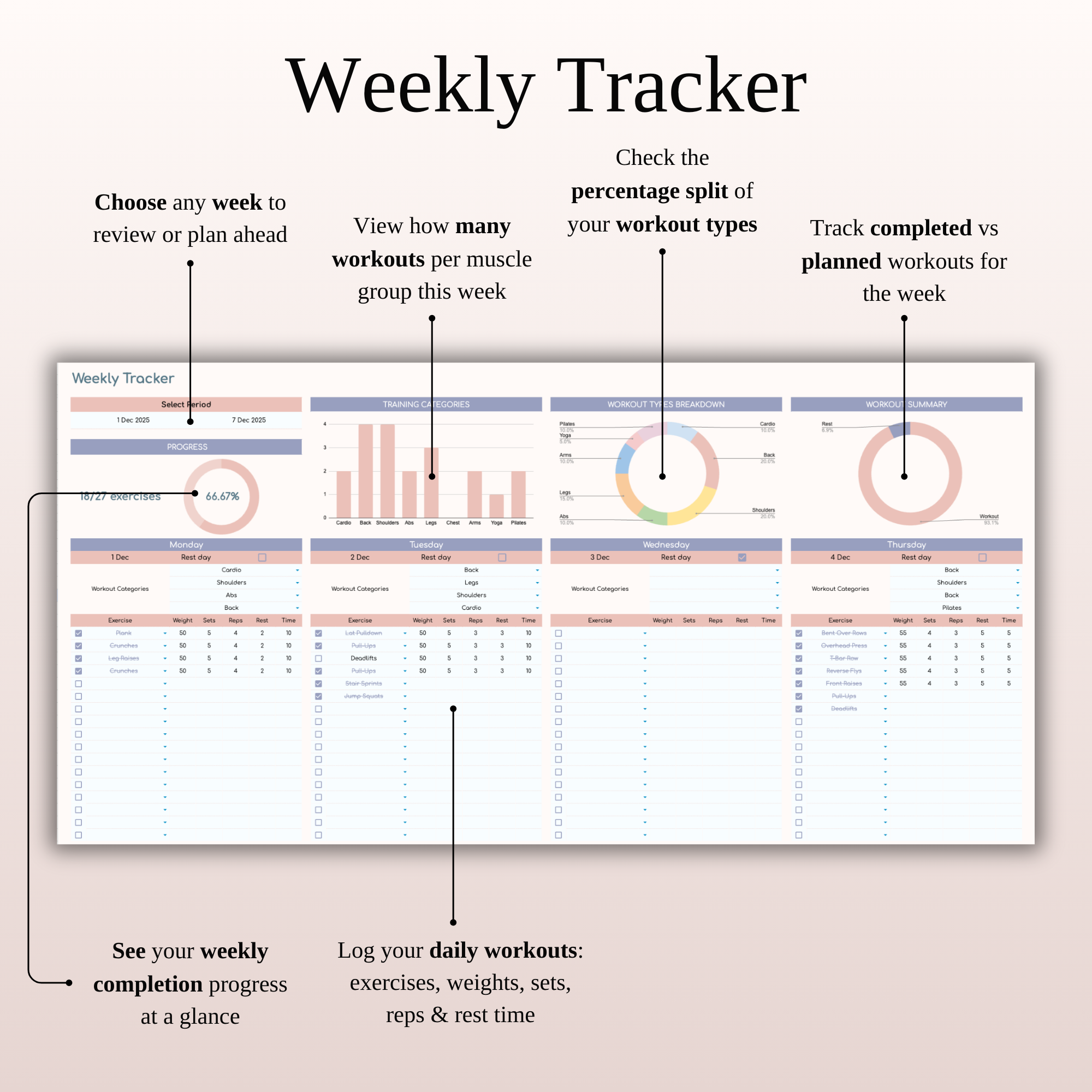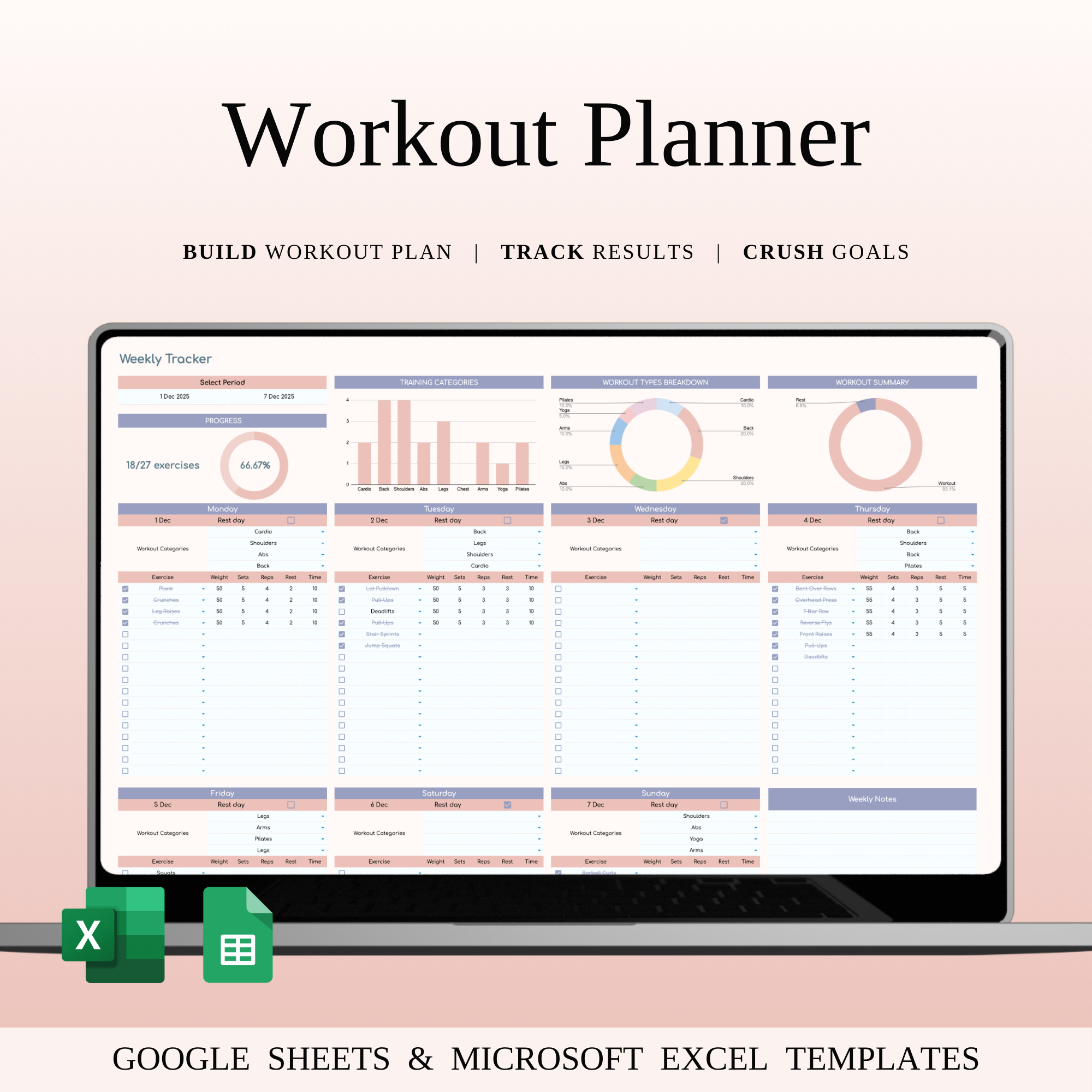 Workout Planner Spreadsheet Template for Excel & Google Sheets